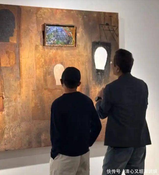 他此次看展由好友陪同,好友耐心给他讲解,两人看得十分投入。